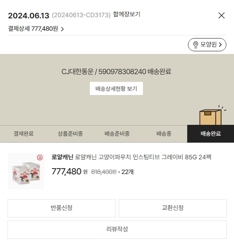 기부자님이 사용한 기부포인트 32,200원, 100원 미만 지원금 80원, 결제 수수료 17,746원, 기타 사업비는 행복나눔재단이 부담했습니다. (기부후기 발송시점에 최종 업데이트 됩니다.) 실제 쇼핑몰에서 확인되는 배송현황을 캡처한 내용입니다. 실시간 자료와는 차이가 있을 수 있습니다.