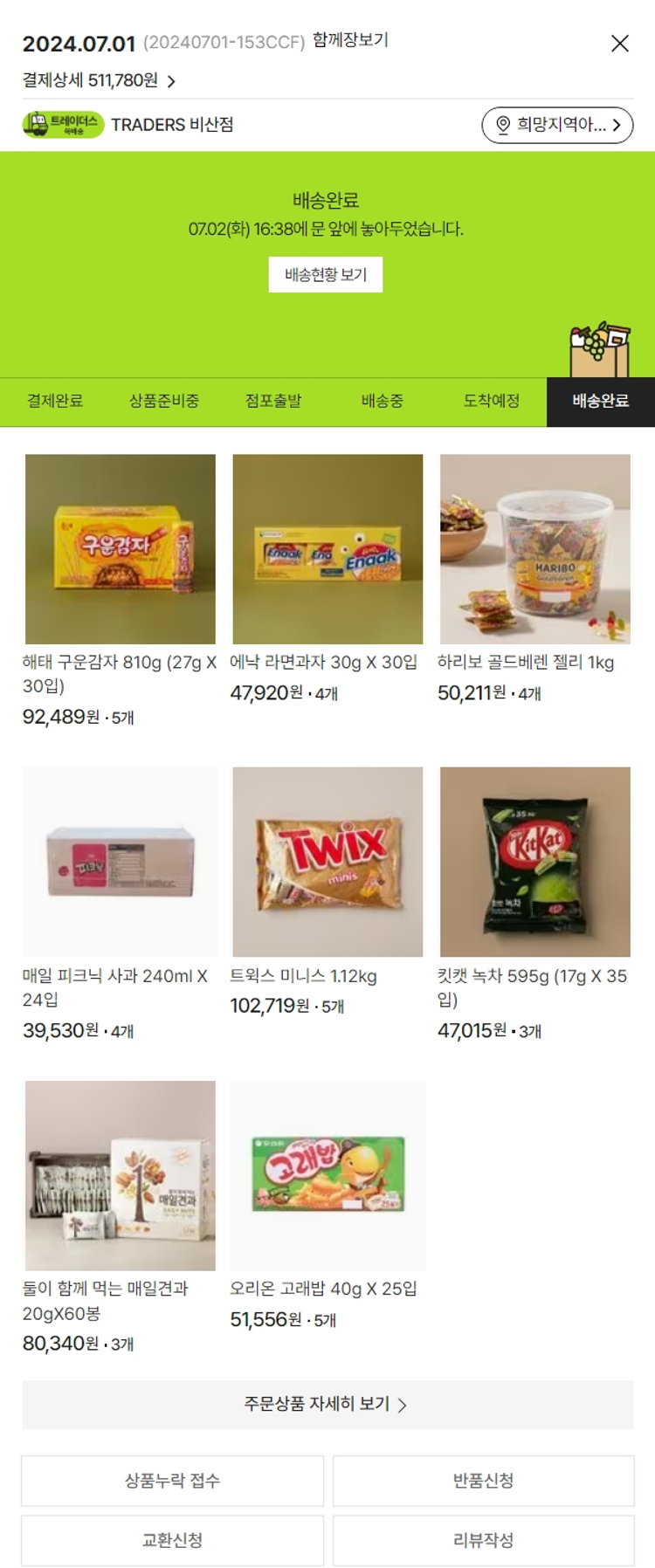 기부자님이 사용한 기부포인트 11,000원, 가격상승분 12,640원, 100원 미만 지원금 40원, 결제 수수료 15,613원, 기타 사업비는 행복나눔재단이 부담했습니다. (기부후기 발송시점에 최종 업데이트 됩니다.) 실제 쇼핑몰에서 확인되는 배송현황을 캡처한 내용입니다. 실시간 자료와는 차이가 있을 수 있습니다.
