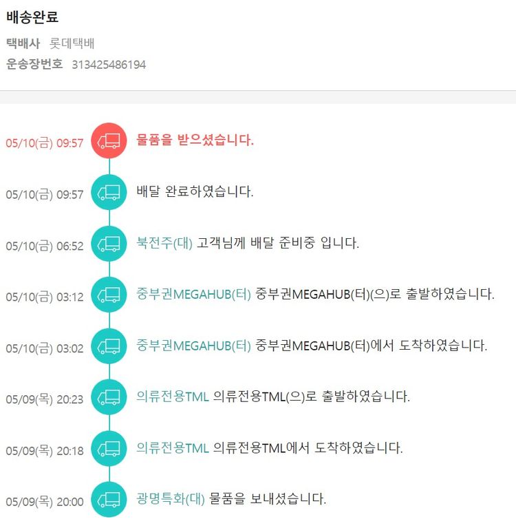 기부자님이 사용한 기부포인트 500원, 물품배송비 3,000원, 가격상승분 38원, 100원 미만 지원금 31원, 결제 수수료 10,415원, 기타 사업비는 행복나눔재단이 부담했습니다. (기부후기 발송시점에 최종 업데이트 됩니다.) 실제 쇼핑몰에서 확인되는 배송현황을 캡처한 내용입니다. 실시간 자료와는 차이가 있을 수 있습니다.