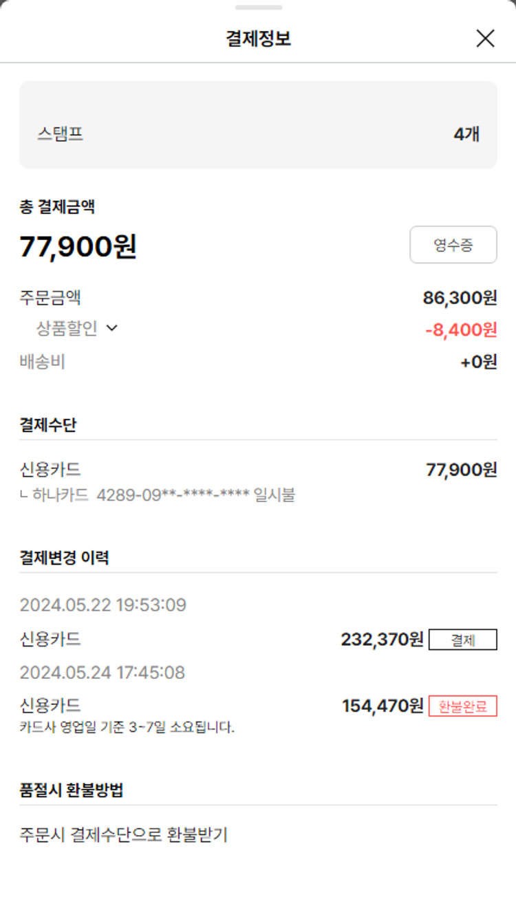주문 건 중 품절 건 발생하여 2024. 05. 28. 재주문했습니다.