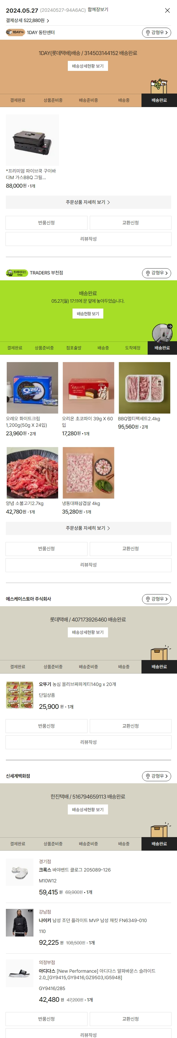 기부자님이 사용한 기부포인트 17,500원, 가격상승분 29,858원, 100원 미만 지원금 22원, 결제 수수료 13,716원, 기타 사업비는 행복나눔재단이 부담했습니다. (기부후기 발송시점에 최종 업데이트 됩니다.) 실제 쇼핑몰에서 확인되는 배송현황을 캡처한 내용입니다. 실시간 자료와는 차이가 있을 수 있습니다.