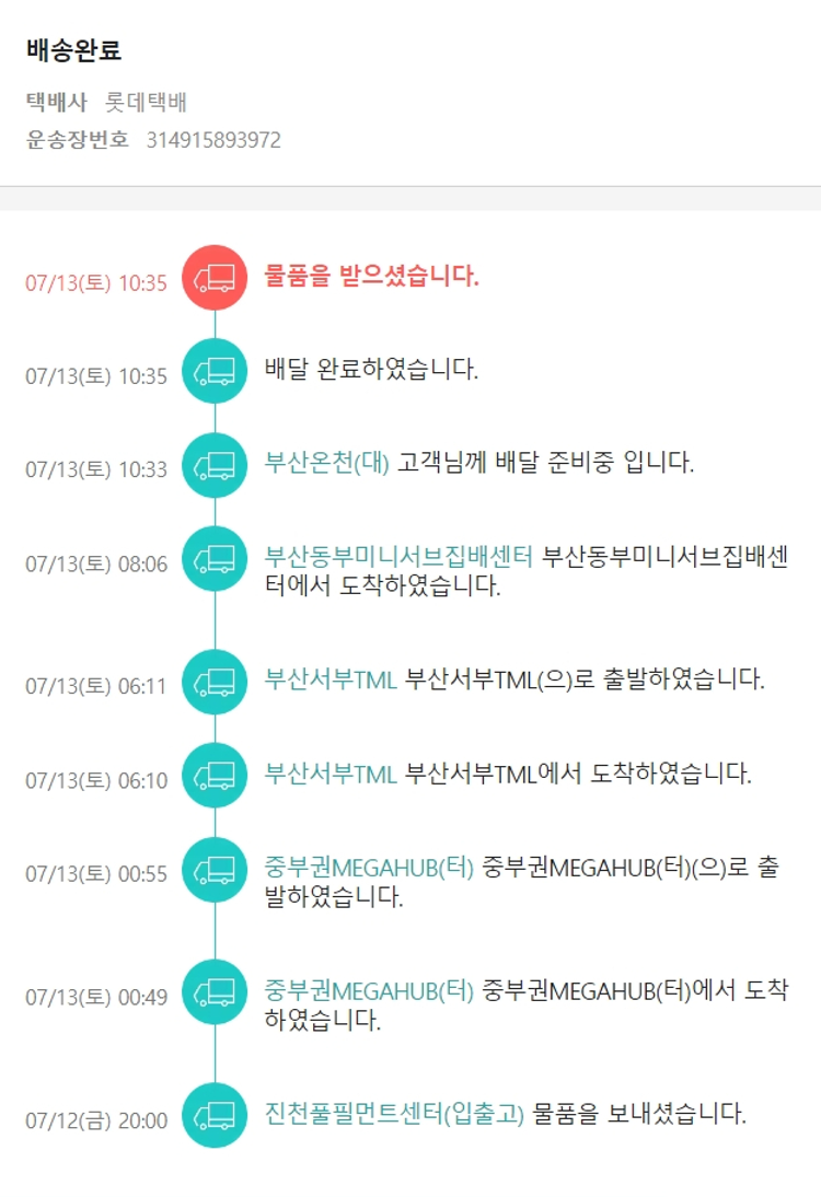 기부자님이 사용한 기부포인트 2,000원, 물품배송비 3,000원, 가격상승분 51원, 100원 미만 지원금 57원, 결제 수수료 12,774원, 기타 사업비는 행복나눔재단이 부담했습니다. (기부후기 발송시점에 최종 업데이트 됩니다.) 실제 쇼핑몰에서 확인되는 배송현황을 캡처한 내용입니다. 실시간 자료와는 차이가 있을 수 있습니다.