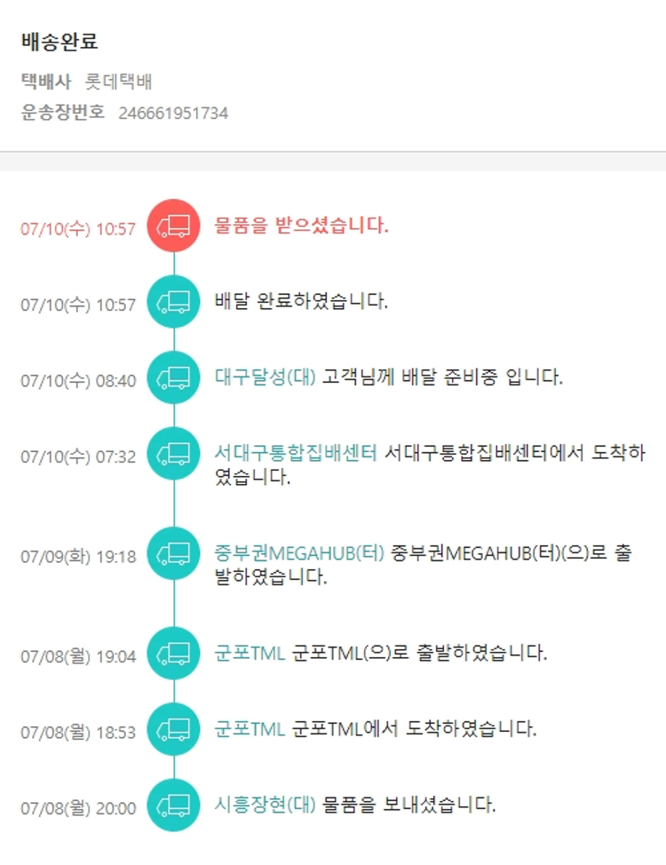 가격상승분 1,294원, 100원 미만 지원금 80원, 결제 수수료 11,932원, 기타 사업비는 행복나눔재단이 부담했습니다. (기부후기 발송시점에 최종 업데이트 됩니다.) 실제 쇼핑몰에서 확인되는 배송현황을 캡처한 내용입니다. 실시간 자료와는 차이가 있을 수 있습니다.