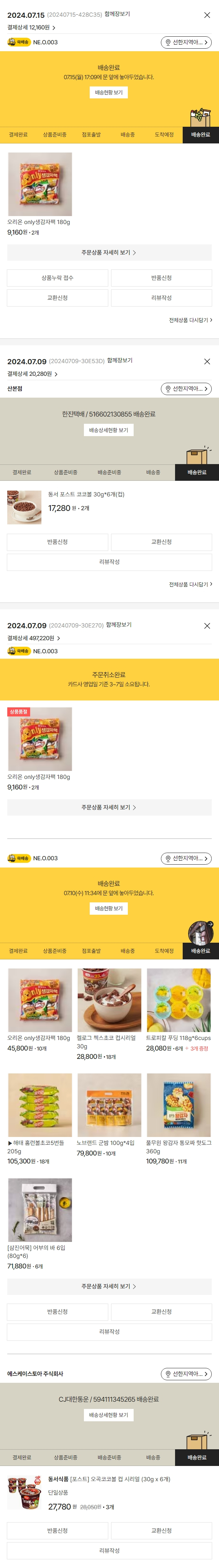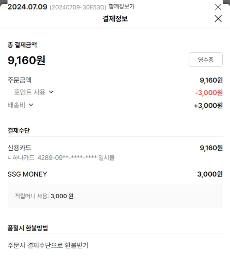 물품배송비 3,000원, 가격상승분 25,980원, 100원 미만 지원금 80원, SSG 머니 3,000포인트, 기타 사업비는 행복나눔재단이 부담했습니다. (기부후기 발송시점에 최종 업데이트 됩니다.) 주문 건 중 품절 건 발생하여 2024. 07. 15. 재주문했습니다. 실제 쇼핑몰에서 확인되는 배송현황을 캡처한 내용입니다. 실시간 자료와는 차이가 있을 수 있습니다.