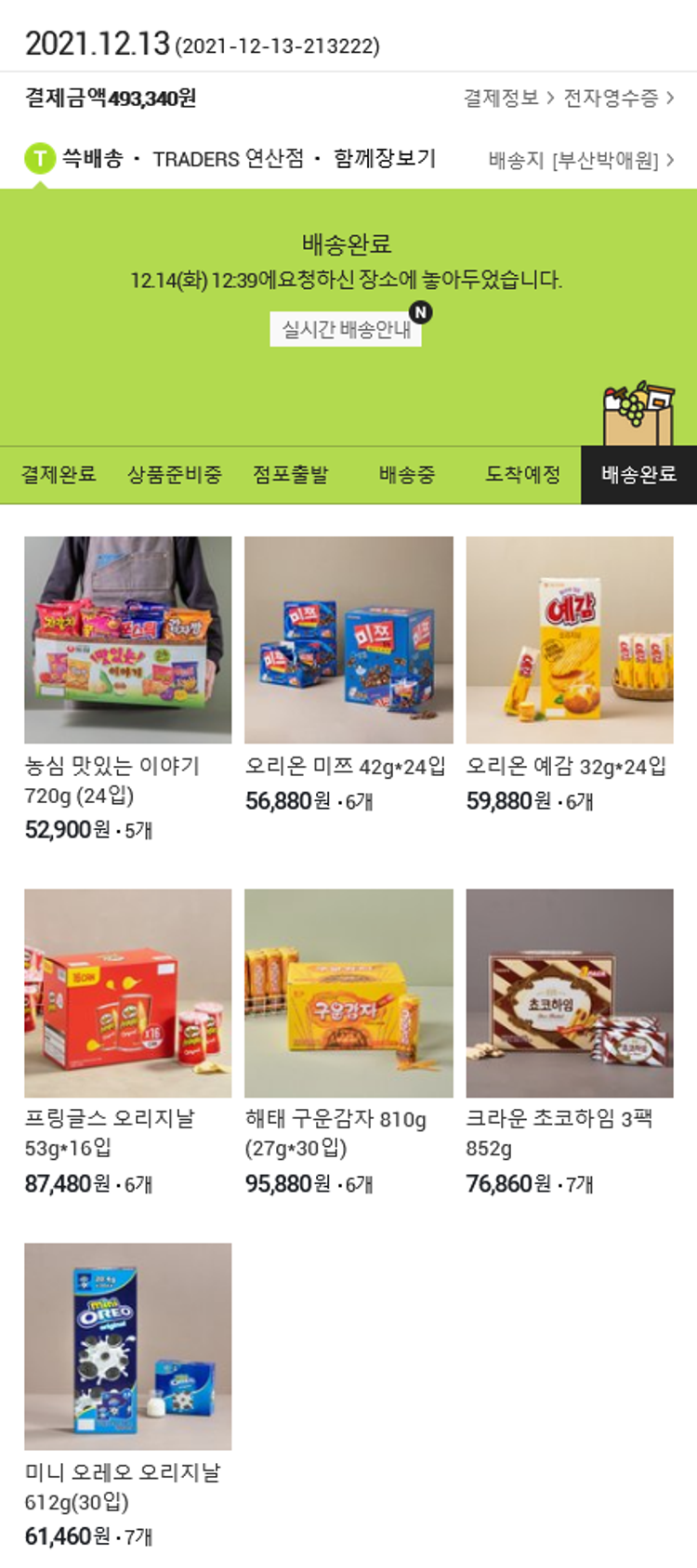 기부자님이 사용한 기부포인트 5,000원, 물품배송비 2,000원, 100원 미만 지원금 40원, 결제 수수료 13,048원, 기타 사업비는 행복나눔재단이 부담했습니다. (기부후기 발송시점에 최종 업데이트 됩니다.) 실제 쇼핑몰에서 확인되는 배송현황을 캡처한 내용입니다. 실시간 자료와는 차이가 있을 수 있습니다.