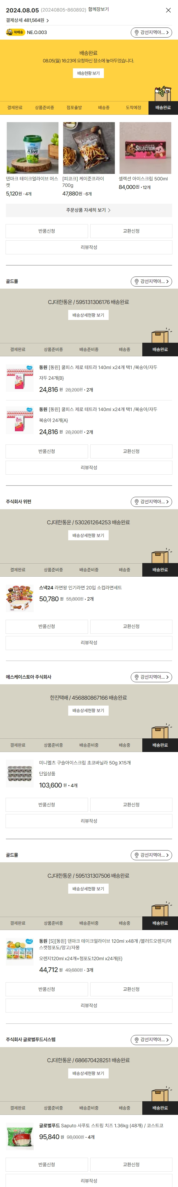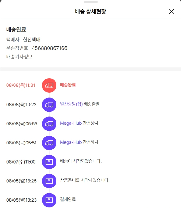 기부자님이 사용한 기부포인트 8,100원, 가격상승분 954원, 100원 미만 지원금 10원, 결제 수수료 9,823원, 기타 사업비는 행복나눔재단이 부담했습니다. (기부후기 발송시점에 최종 업데이트 됩니다.) 실제 쇼핑몰에서 확인되는 배송현황을 캡처한 내용입니다. 실시간 자료와는 차이가 있을 수 있습니다.