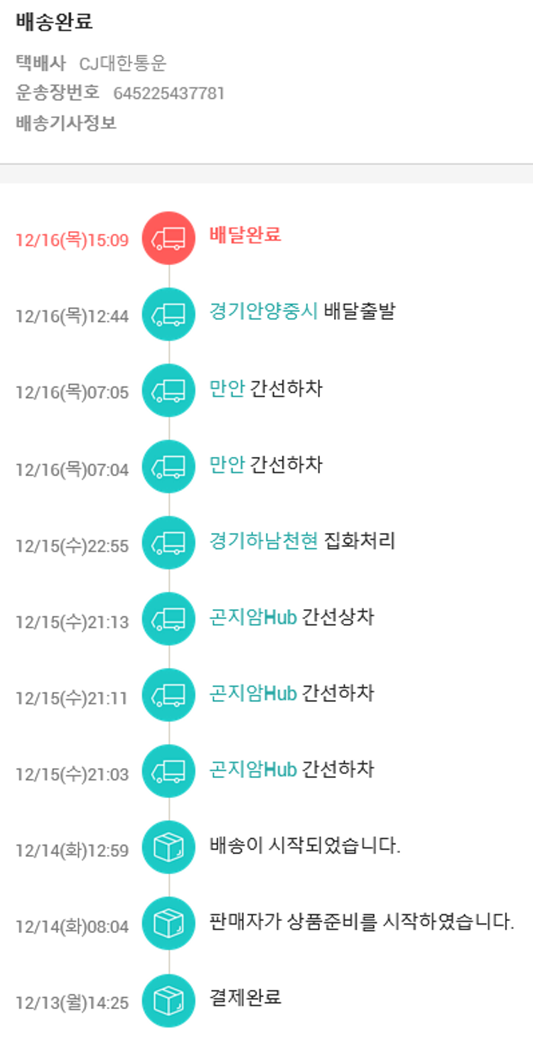 기부자님이 사용한 기부포인트 31,600원, 가격상승분 7,190원, 결제 수수료 11,423원, 기타 사업비는 행복나눔재단이 부담했습니다. (기부후기 발송시점에 최종 업데이트 됩니다.) 실제 쇼핑몰에서 확인되는 배송현황을 캡처한 내용입니다. 실시간 자료와는 차이가 있을 수 있습니다.