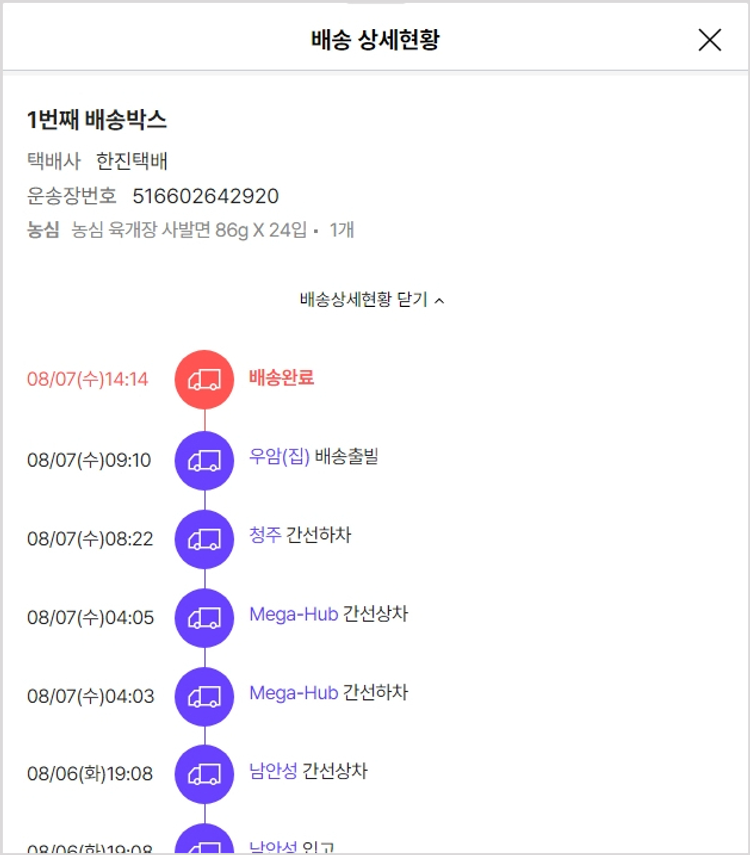 가격상승분 800원, 100원 미만 지원금 60원, 기타 사업비는 행복나눔재단이 부담했습니다. (기부후기 발송시점에 최종 업데이트 됩니다.) 실제 쇼핑몰에서 확인되는 배송현황을 캡처한 내용입니다. 실시간 자료와는 차이가 있을 수 있습니다.