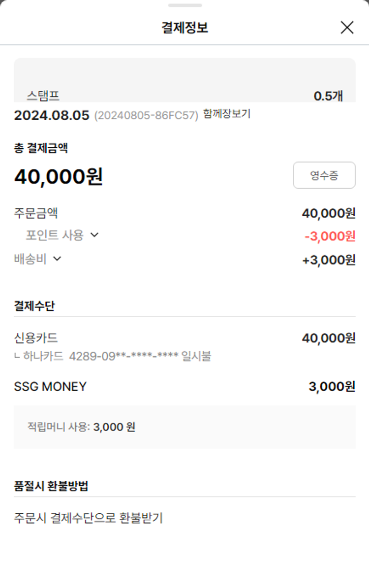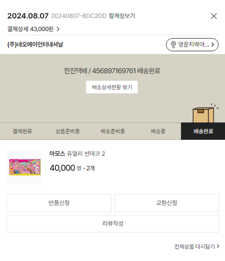 물품배송비 6,000원, 가격상승분 2,630원, 100원 미만 지원금 88원, SSG 머니 3,000포인트, 기타 사업비는 행복나눔재단이 부담했습니다. (기부후기 발송시점에 최종 업데이트 됩니다.) 주문 건 중 품절 건 발생하여 2024. 08. 07. 재주문했습니다. 실제 쇼핑몰에서 확인되는 배송현황을 캡처한 내용입니다. 실시간 자료와는 차이가 있을 수 있습니다.