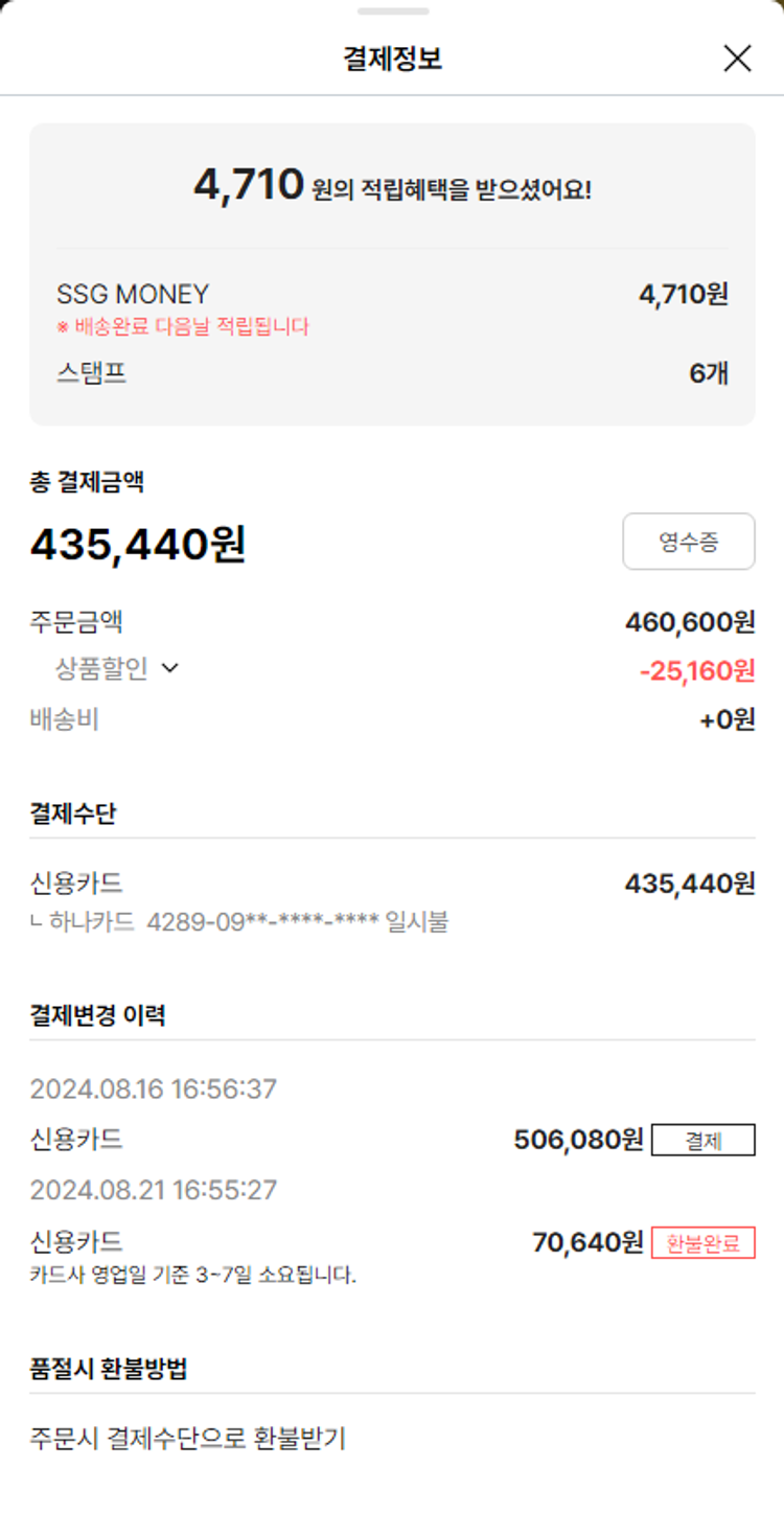 기부자님이 사용한 기부포인트 6,500원, 가격상승분 1,700원, 100원 미만 지원금 80원, 결제 수수료 17,139원, 기타 사업비는 행복나눔재단이 부담했습니다. (기부후기 발송시점에 최종 업데이트 됩니다.) 주문 건 중 품절 건 발생하여 2024.08.28. 재주문했습니다. 실제 쇼핑몰에서 확인되는 배송현황을 캡처한 내용입니다. 실시간 자료와는 차이가 있을 수 있습니다.