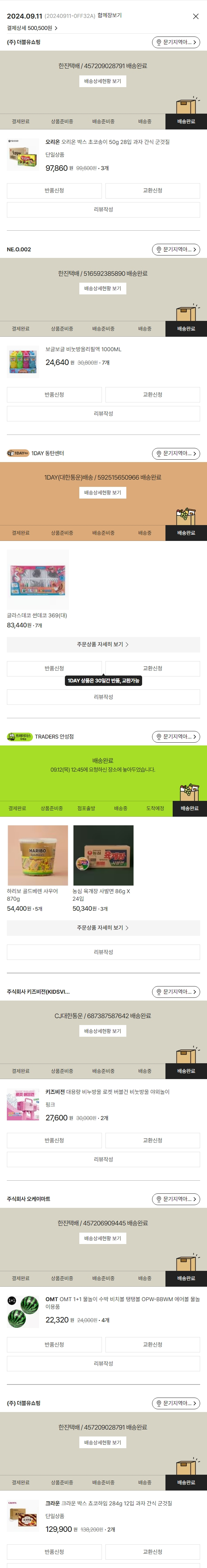 기부자님이 사용한 기부포인트 8,000원, 물품배송비 10,000원, 가격상승분 3,390원, 100원 미만 지원금 10원, 결제 수수료 12,565원, 기타 사업비는 행복나눔재단이 부담했습니다. (기부후기 발송시점에 최종 업데이트 됩니다.) 실제 쇼핑몰에서 확인되는 배송현황을 캡처한 내용입니다. 실시간 자료와는 차이가 있을 수 있습니다.