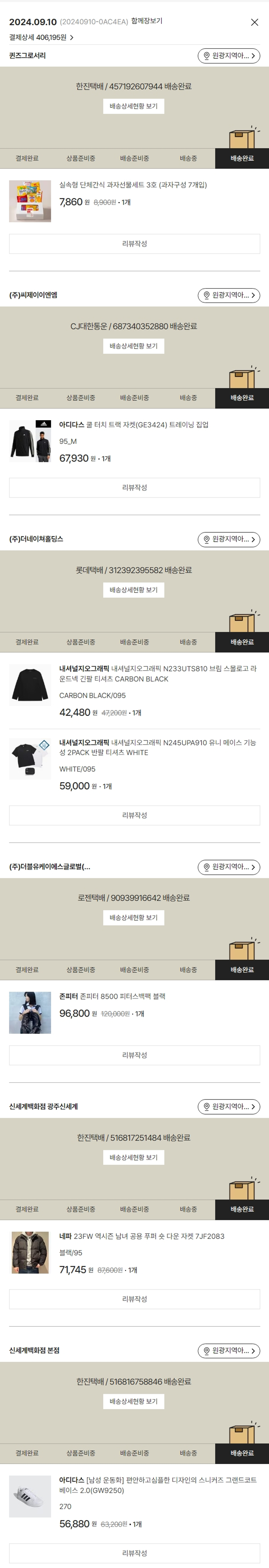 기부자님이 사용한 기부포인트 3,500원, 물품배송비 3,500원, 가격상승분 260원, 100원 미만 지원금 35원, 결제 수수료 10,393원, 기타 사업비는 행복나눔재단이 부담했습니다. (기부후기 발송시점에 최종 업데이트 됩니다.) 실제 쇼핑몰에서 확인되는 배송현황을 캡처한 내용입니다. 실시간 자료와는 차이가 있을 수 있습니다.