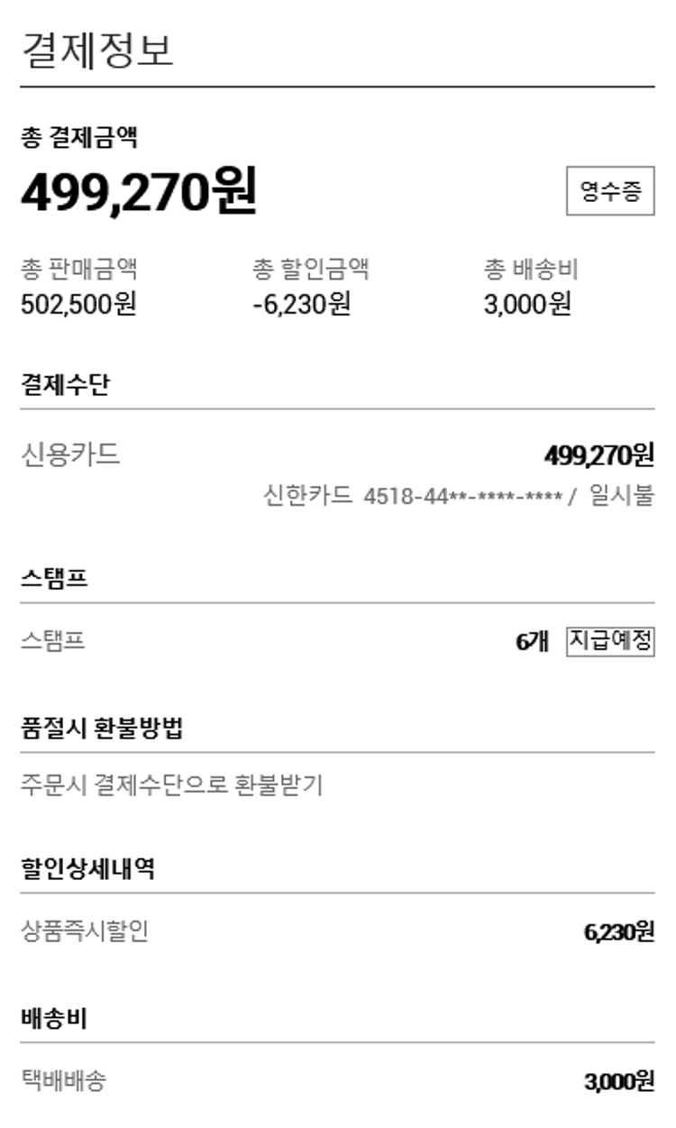 물품배송비 3,000원, 100원 미만 지원금 70원, 결제 수수료 10,916원, 기타 사업비는 행복나눔재단이 부담했습니다. (기부후기 발송시점에 최종 업데이트 됩니다.) 실제 쇼핑몰에서 확인되는 배송현황을 캡처한 내용입니다. 실시간 자료와는 차이가 있을 수 있습니다.