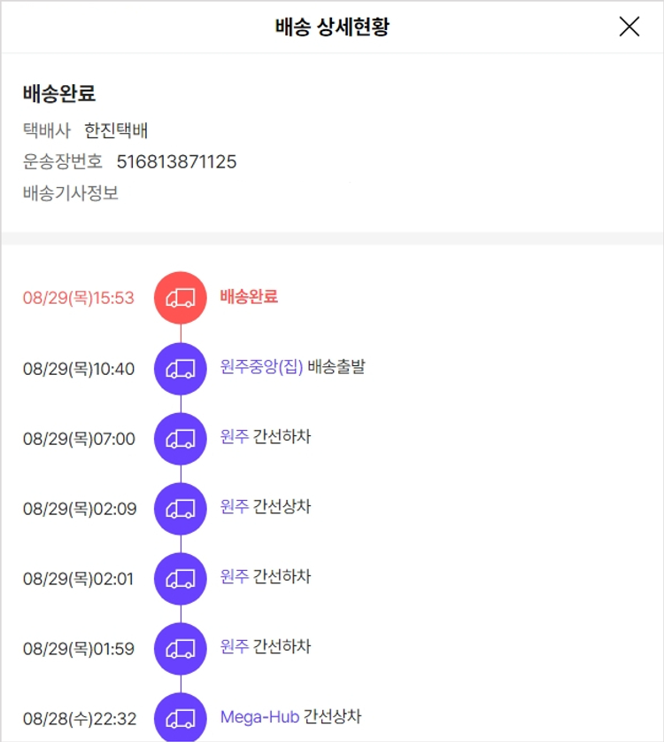 기부자님이 사용한 기부포인트 18,850원, 물품배송비 3,000원, 가격상승분 2,107원, 100원 미만 지원금 46원, 결제 수수료 15,690원, 기타 사업비는 행복나눔재단이 부담했습니다. (기부후기 발송시점에 최종 업데이트 됩니다.) 주문 건 중 품절 건 발생하여 2024.08.28. 재주문 진행했습니다. 실제 쇼핑몰에서 확인되는 배송현황을 캡처한 내용입니다. 실시간 자료와는 차이가 있을 수 있습니다.