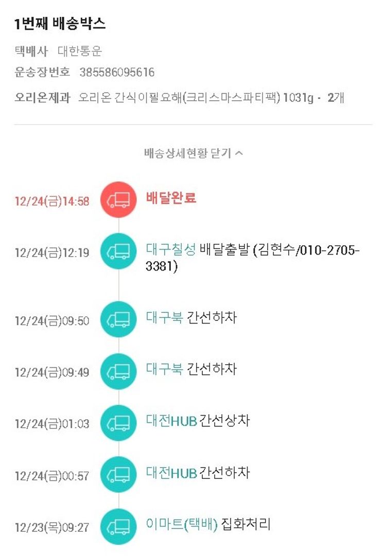 기부자님이 사용한 기부포인트 36,700원, 가격상승분 690원, 결제 수수료 11,003원, 기타 사업비는 행복나눔재단이 부담했습니다. (기부후기 발송시점에 최종 업데이트 됩니다.) 실제 쇼핑몰에서 확인되는 배송현황을 캡처한 내용입니다. 실시간 자료와는 차이가 있을 수 있습니다.