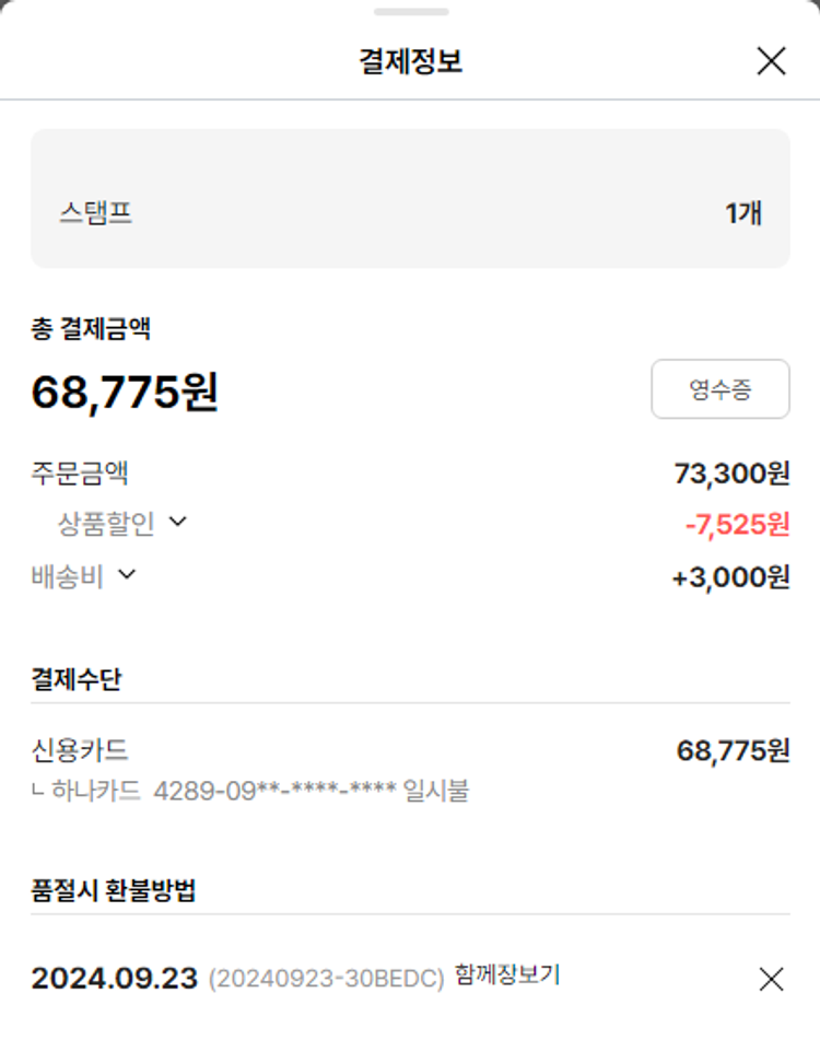 주문 건 중 품절 건 발생하여 2024-09-27 재주문했습니다.