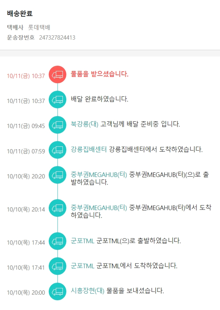 기부자님이 사용한 기부포인트 26,550원, 가격상승분 260원, 100원 미만 지원금 20원, 결제 수수료 11,980원, 기타 사업비는 행복나눔재단이 부담했습니다. (기부후기 발송시점에 최종 업데이트 됩니다.) 실제 쇼핑몰에서 확인되는 배송현황을 캡처한 내용입니다. 실시간 자료와는 차이가 있을 수 있습니다.