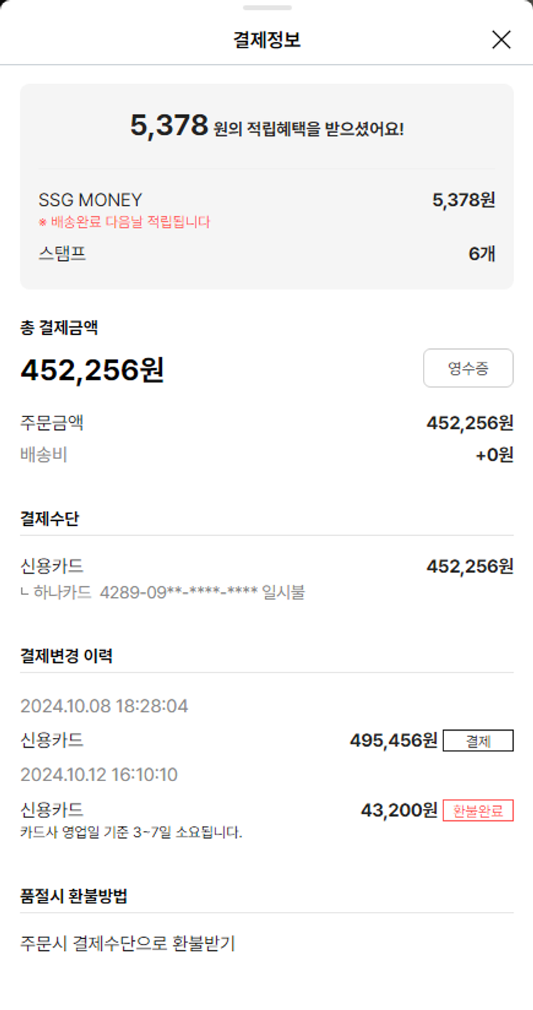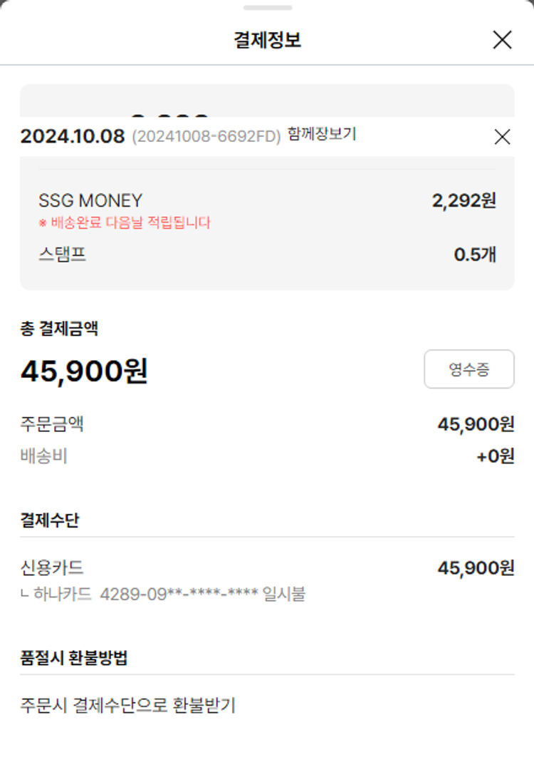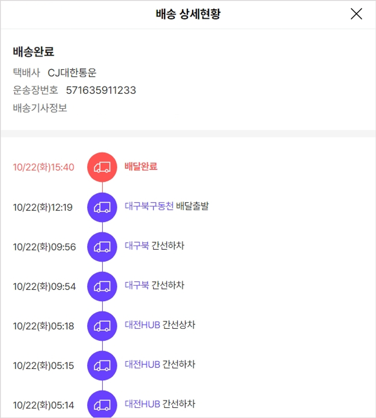 기부자님이 사용한 기부포인트 4,000원, 가격상승분 2,700원, 100원 미만 지원금 56원, 결제 수수료 14,334원, 기타 사업비는 행복나눔재단이 부담했습니다. (기부후기 발송시점에 최종 업데이트 됩니다.) 주문 건 중 품절 건 발생하여 2024-10-18 재주문했습니다. 실제 쇼핑몰에서 확인되는 배송현황을 캡처한 내용입니다. 실시간 자료와는 차이가 있을 수 있습니다.