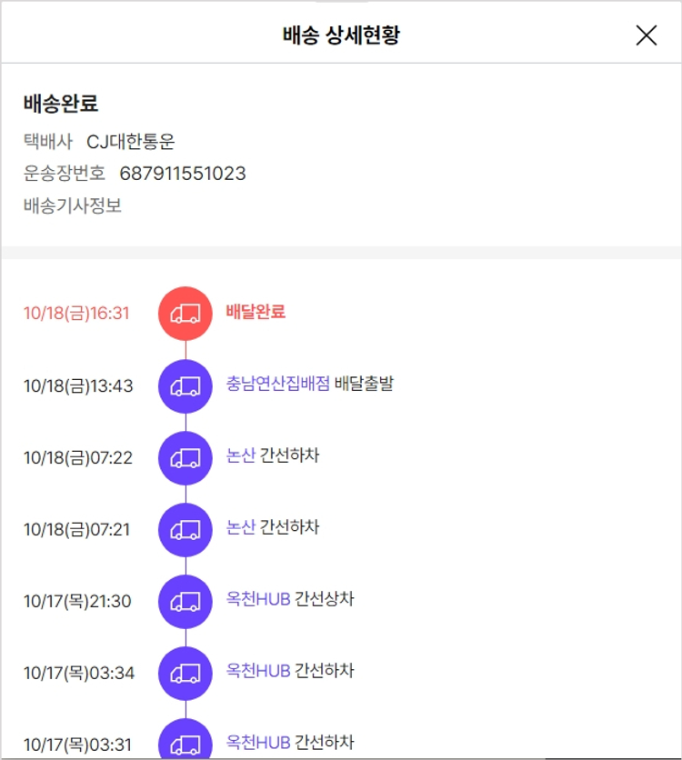 기부자님이 사용한 기부포인트 10,200원, 가격상승분 28,320원, 100원 미만 지원금 20원, 결제 수수료 25,070원, 기타 사업비는 행복나눔재단이 부담했습니다. (기부후기 발송시점에 최종 업데이트 됩니다.) 실제 쇼핑몰에서 확인되는 배송현황을 캡처한 내용입니다. 실시간 자료와는 차이가 있을 수 있습니다.