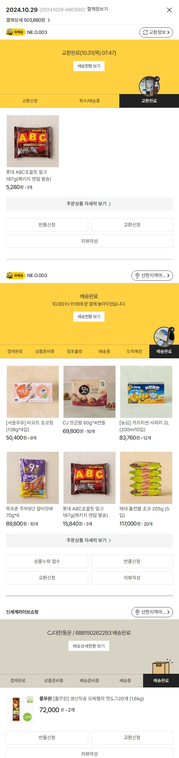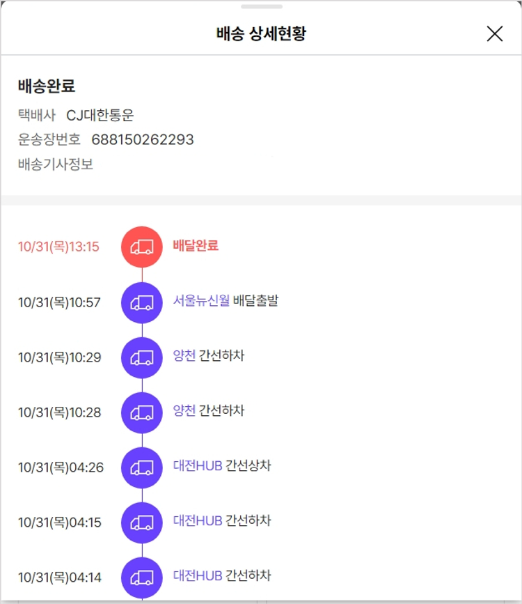 가격상승분 3,820원, 100원 미만 지원금 60원, 결제 수수료 12,650원, 기타 사업비는 행복나눔재단이 부담했습니다. (기부후기 발송시점에 최종 업데이트 됩니다.) 실제 쇼핑몰에서 확인되는 배송현황을 캡처한 내용입니다. 실시간 자료와는 차이가 있을 수 있습니다.