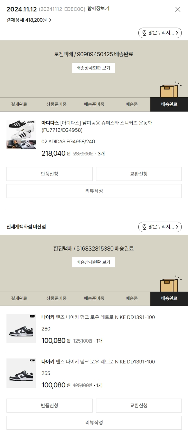 기부자님이 사용한 기부포인트 7,000원, 가격상승분 2,376원, 100원 미만 지원금 24원, 결제 수수료 11,629원, 기타 사업비는 행복나눔재단이 부담했습니다. (기부후기 발송시점에 최종 업데이트 됩니다.) 실제 쇼핑몰에서 확인되는 배송현황을 캡처한 내용입니다. 실시간 자료와는 차이가 있을 수 있습니다.