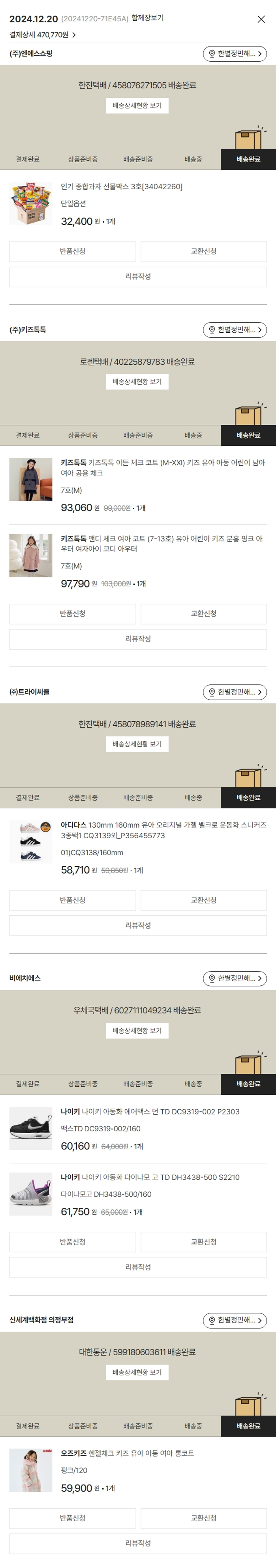 물품배송비 7,000원, 가격상승분 300원, 100원 미만 지원금 70원, 결제 수수료 16,311원, 기타 사업비는 행복나눔재단이 부담했습니다. (기부후기 발송시점에 최종 업데이트 됩니다.) 실제 쇼핑몰에서 확인되는 배송현황을 캡처한 내용입니다. 실시간 자료와는 차이가 있을 수 있습니다.