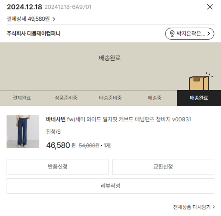 주문 건 중 품절 건 발생하여 2024-12-24 재주문했습니다.