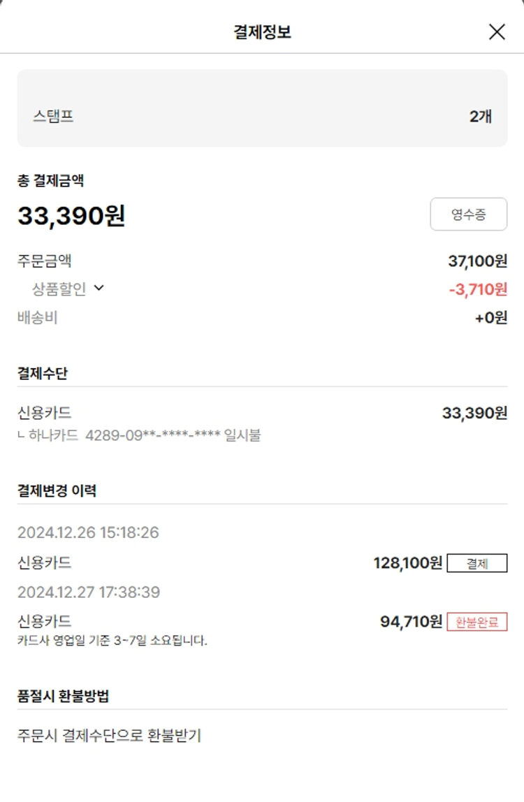 주문 건 중 품절 건 발생하여 2024-12-27 재주문했습니다.