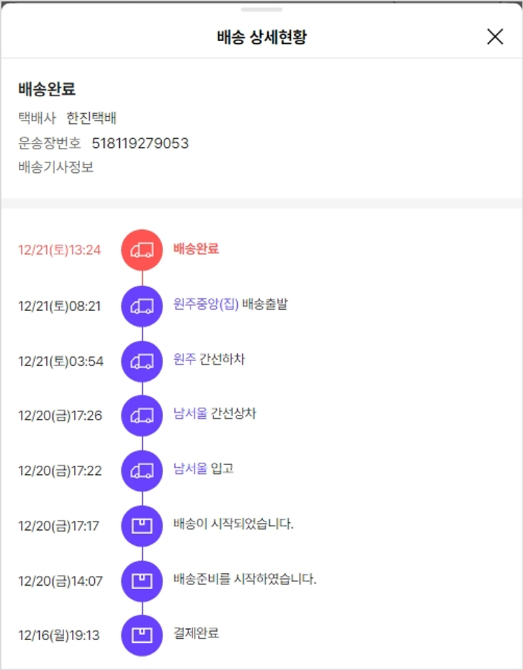 기부자님이 사용한 기부포인트 139,500원, 물품배송비 3,000원, 가격상승분 17,400원, 100원 미만 지원금 85원, 결제 수수료 13,142원, 기타 사업비는 행복나눔재단이 부담했습니다. (기부후기 발송시점에 최종 업데이트 됩니다.) 실제 쇼핑몰에서 확인되는 배송현황을 캡처한 내용입니다. 실시간 자료와는 차이가 있을 수 있습니다.