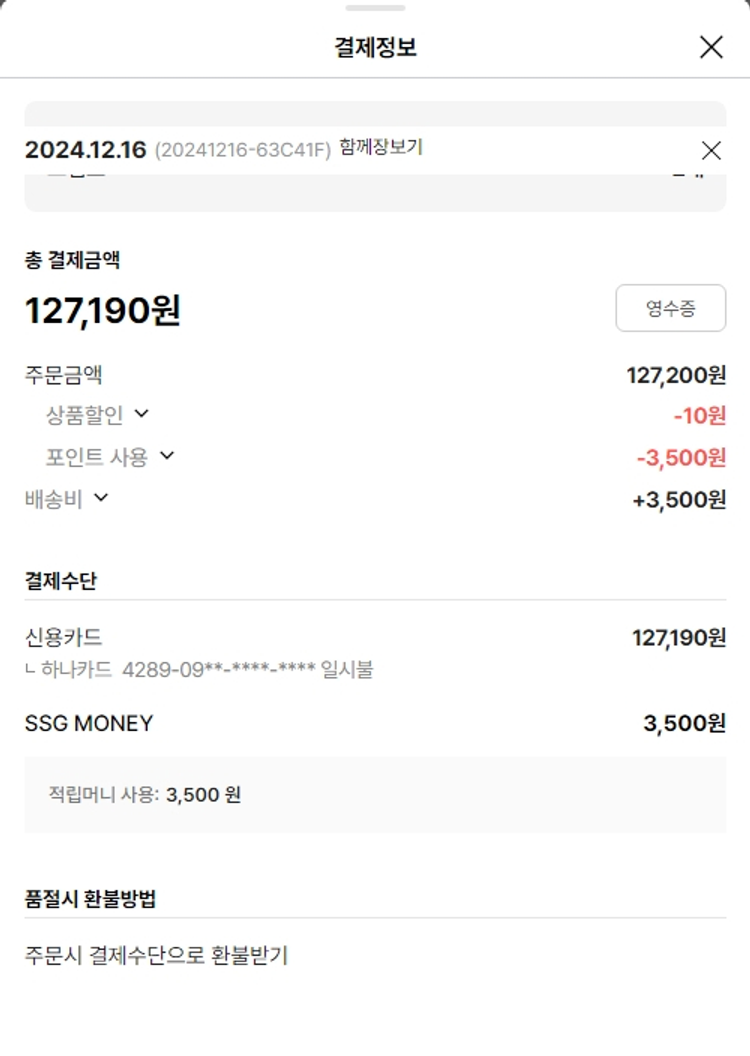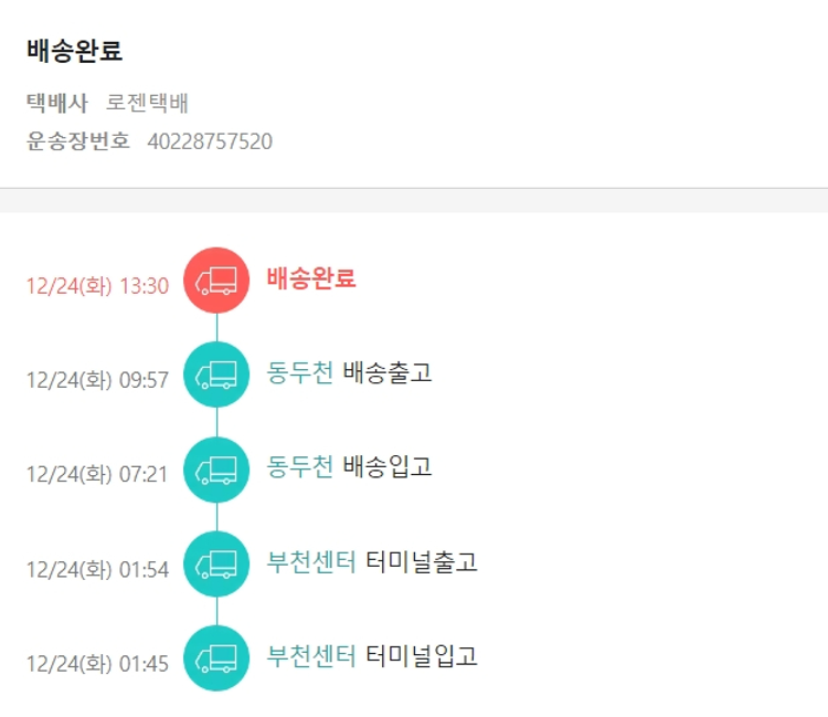 기부자님이 사용한 기부포인트 14,000원, 물품배송비 2,500원, 가격상승분 5,088원, 100원 미만 지원금 57원, SSG 머니 3,500포인트, 결제 수수료 15,883원, 기타 사업비는 행복나눔재단이 부담했습니다. (기부후기 발송시점에 최종 업데이트 됩니다.) 주문 건 중 품절 건 발생하여 2024-12-23 재주문했습니다. 실제 쇼핑몰에서 확인되는 배송현황을 캡처한 내용입니다. 실시간 자료와는 차이가 있을 수 있습니다.
