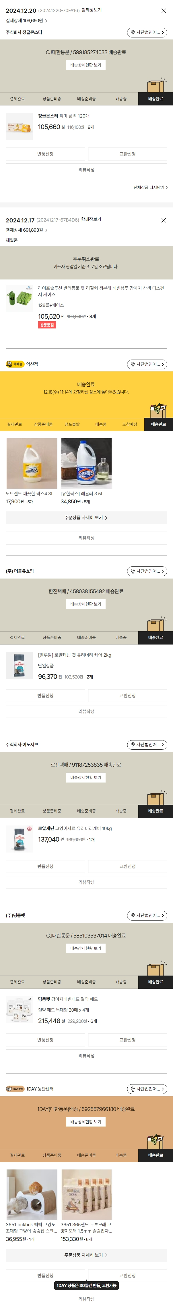기부자님이 사용한 기부포인트 97,950원, 가격상승분 6,630원, 100원 미만 지원금 23원, SSG 머니 4,000포인트, 결제 수수료 21,782원, 기타 사업비는 행복나눔재단이 부담했습니다. (기부후기 발송시점에 최종 업데이트 됩니다.) 주문 건 중 품절 건 발생하여 2024-12-20 재주문했습니다. 실제 쇼핑몰에서 확인되는 배송현황을 캡처한 내용입니다. 실시간 자료와는 차이가 있을 수 있습니다.