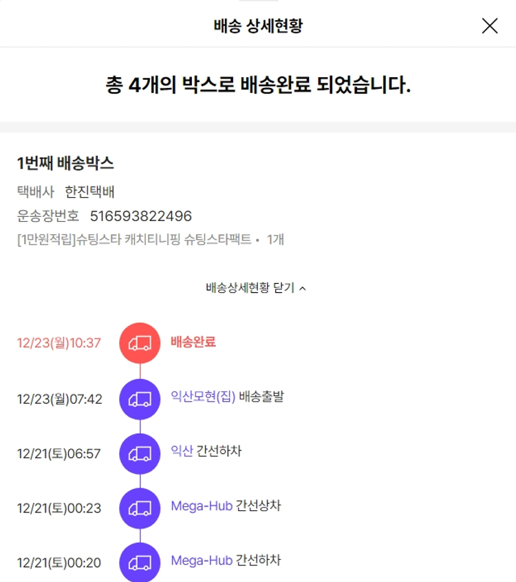 기부자님이 사용한 기부포인트 2,000원, 물품배송비 3,000원, 가격상승분 2,540원, 100원 미만 지원금 40원, 결제 수수료 12,439원, 기타 사업비는 행복나눔재단이 부담했습니다. (기부후기 발송시점에 최종 업데이트 됩니다.) 실제 쇼핑몰에서 확인되는 배송현황을 캡처한 내용입니다. 실시간 자료와는 차이가 있을 수 있습니다.