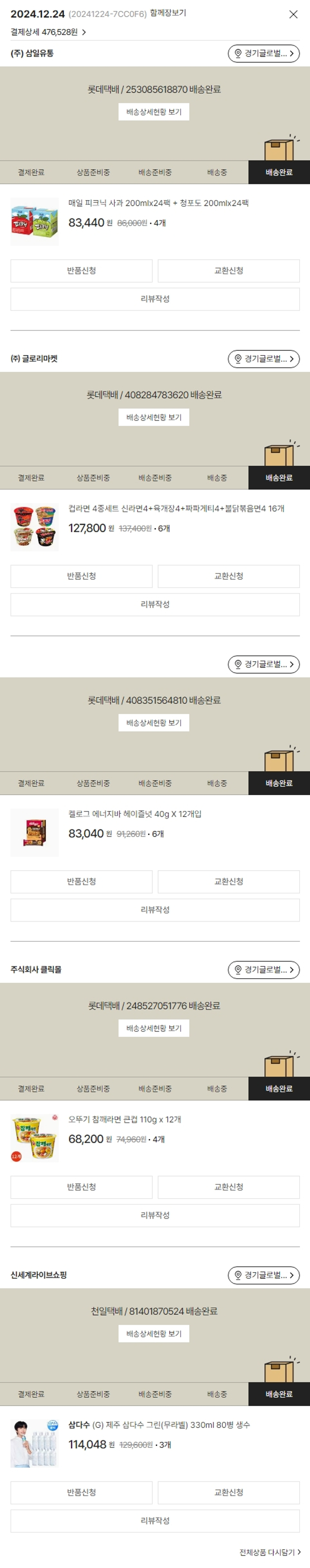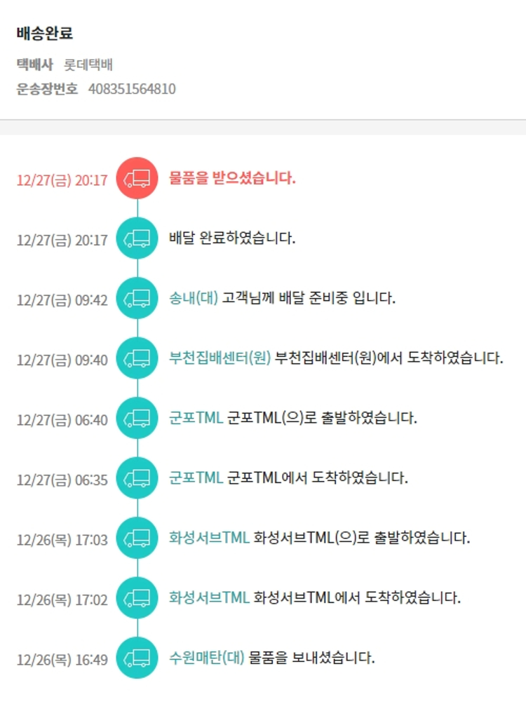 기부자님이 사용한 기부포인트 25,000원, 가격상승분 1,380원, 100원 미만 지원금 48원, 결제 수수료 11,386원, 기타 사업비는 행복나눔재단이 부담했습니다. (기부후기 발송시점에 최종 업데이트 됩니다.) 실제 쇼핑몰에서 확인되는 배송현황을 캡처한 내용입니다. 실시간 자료와는 차이가 있을 수 있습니다.