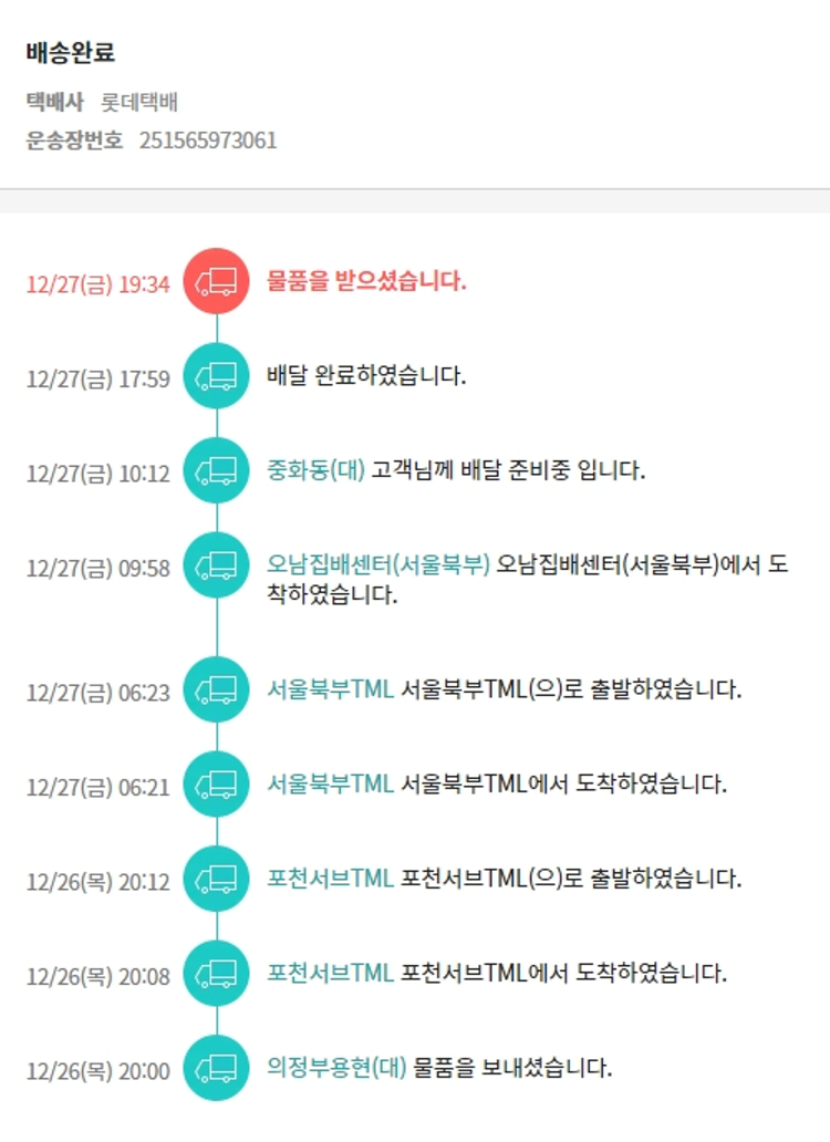 기부자님이 사용한 기부포인트 16,500원, 가격상승분 20,250원, 100원 미만 지원금 90원, 결제 수수료 13,340원, 기타 사업비는 행복나눔재단이 부담했습니다. (기부후기 발송시점에 최종 업데이트 됩니다.) 실제 쇼핑몰에서 확인되는 배송현황을 캡처한 내용입니다. 실시간 자료와는 차이가 있을 수 있습니다.