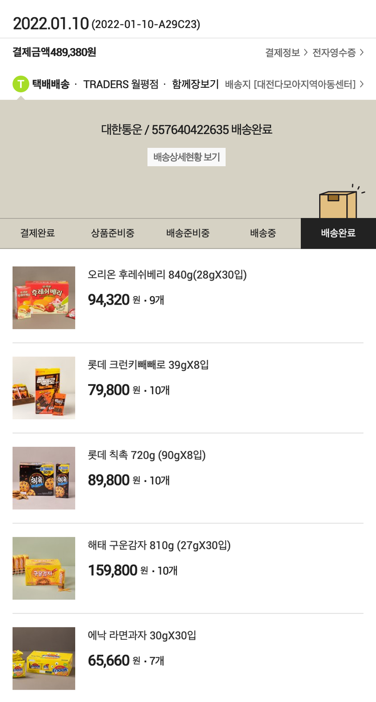 기부자님이 사용한 기부포인트 100원, 100원 미만 지원금 80원, 결제 수수료 12,676원, 기타 사업비는 행복나눔재단이 부담했습니다. (기부후기 발송시점에 최종 업데이트 됩니다.) 실제 쇼핑몰에서 확인되는 배송현황을 캡처한 내용입니다. 실시간 자료와는 차이가 있을 수 있습니다.