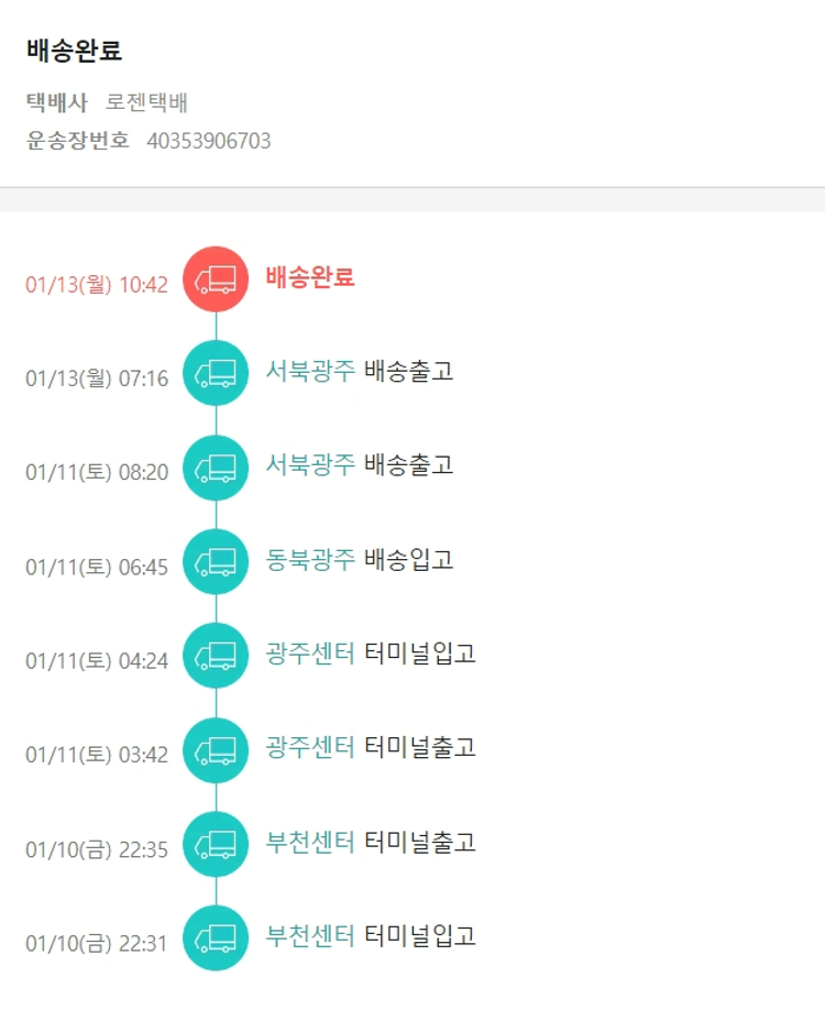 기부자님이 사용한 기부포인트 5,000원, 가격상승분 40원, 100원 미만 지원금 60원, 결제 수수료 14,524원, 기타 사업비는 행복나눔재단이 부담했습니다. (기부후기 발송시점에 최종 업데이트 됩니다.) 실제 쇼핑몰에서 확인되는 배송현황을 캡처한 내용입니다. 실시간 자료와는 차이가 있을 수 있습니다.
