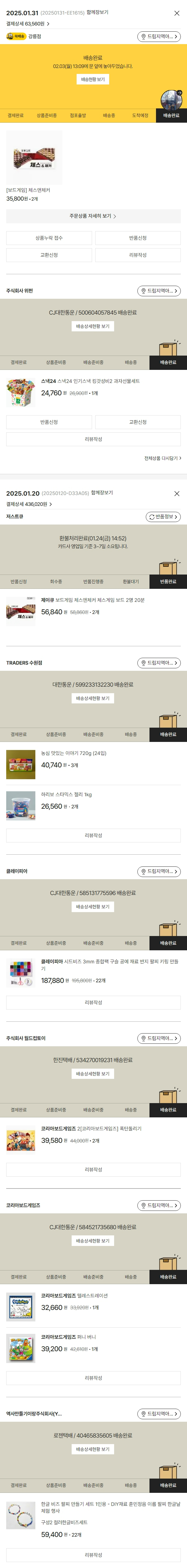 기부자님이 사용한 기부포인트 38,900원, 물품배송비 13,000원, 가격상승분 6,053원, 100원 미만 지원금 27원, 결제 수수료 12,953원, 기타 사업비는 행복나눔재단이 부담했습니다. (기부후기 발송시점에 최종 업데이트 됩니다.) 주문 상품 중 품절 발생하여 2025-01-31 재주문하였습니다. 실제 쇼핑몰에서 확인되는 배송현황을 캡처한 내용입니다. 실시간 자료와는 차이가 있을 수 있습니다.