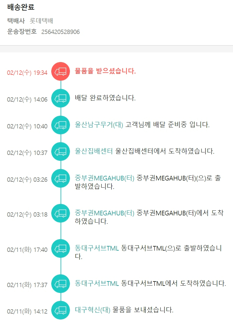 기부자님이 사용한 기부포인트 2,200원, 물품배송비 3,000원, 가격상승분 5,700원, 100원 미만 지원금 20원, 결제 수수료 11,685원, 기타 사업비는 행복나눔재단이 부담했습니다. (기부후기 발송시점에 최종 업데이트 됩니다.) 실제 쇼핑몰에서 확인되는 배송현황을 캡처한 내용입니다. 실시간 자료와는 차이가 있을 수 있습니다.