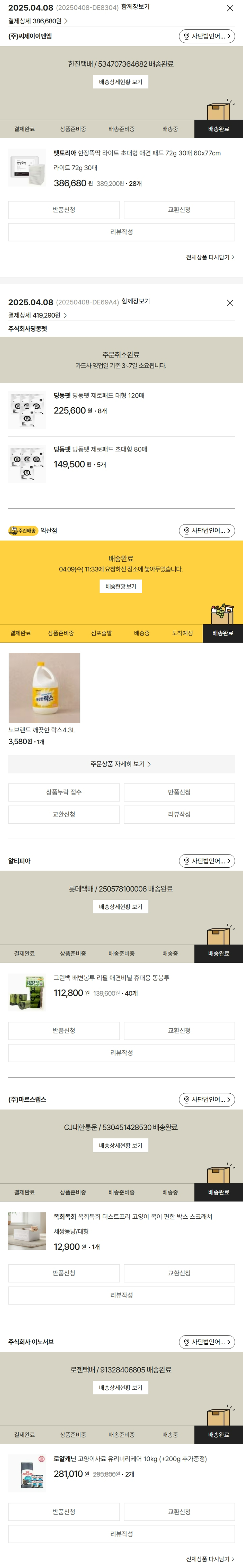 기부자님이 사용한 기부포인트 22,100원, 물품배송비 9,000원, 가격상승분 12,010원, 100원 미만 지원금 60원, 결제 수수료 16,943원, 기타 사업비는 행복나눔재단이 부담했습니다. (기부후기 발송시점에 최종 업데이트 됩니다.) 상품 주문 건 중 품절 발생하여 2025-04-08 재주문하였습니다. 실제 쇼핑몰에서 확인되는 배송현황을 캡처한 내용입니다. 실시간 자료와는 차이가 있을 수 있습니다.