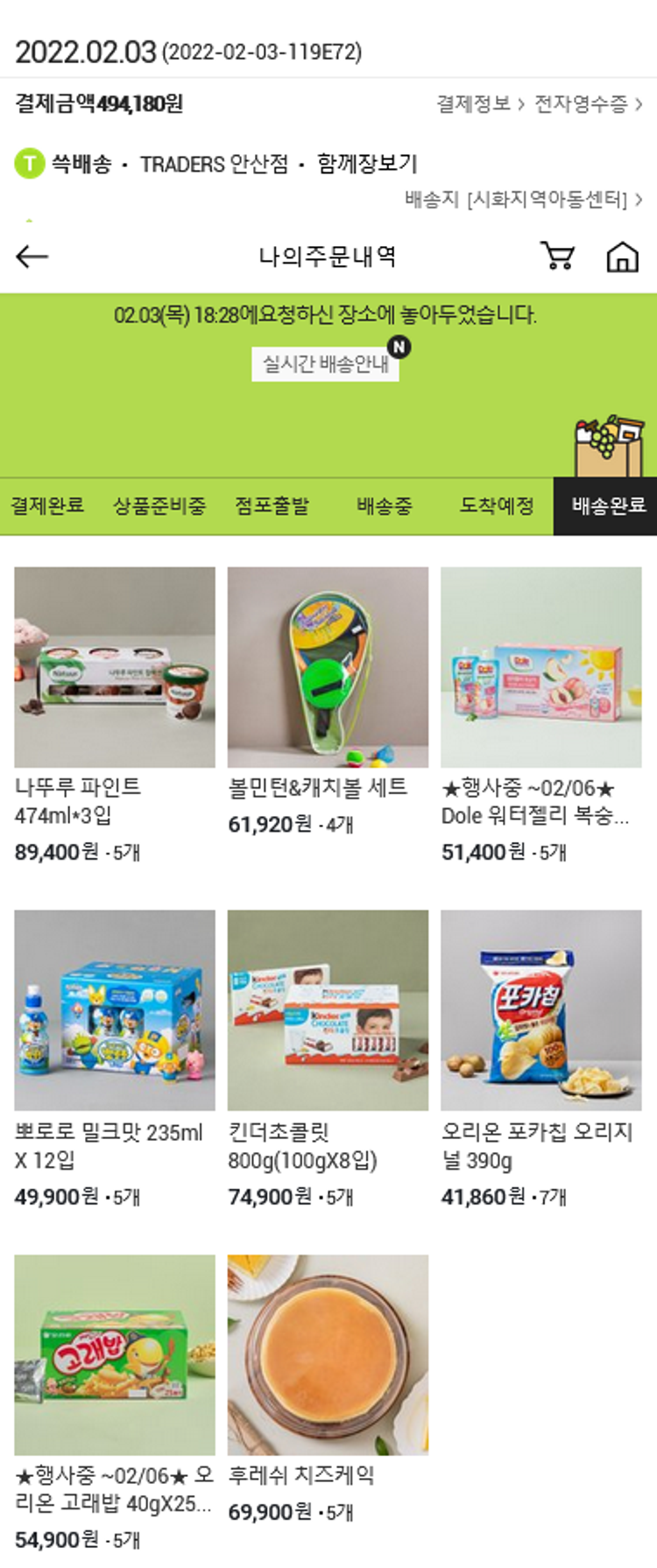 기부자님이 사용한 기부포인트 5,000원, 100원 미만 지원금 80원, 결제 수수료 10,825원, 기타 사업비는 행복나눔재단이 부담했습니다. (기부후기 발송시점에 최종 업데이트 됩니다.) 실제 쇼핑몰에서 확인되는 배송현황을 캡처한 내용입니다. 실시간 자료와는 차이가 있을 수 있습니다.