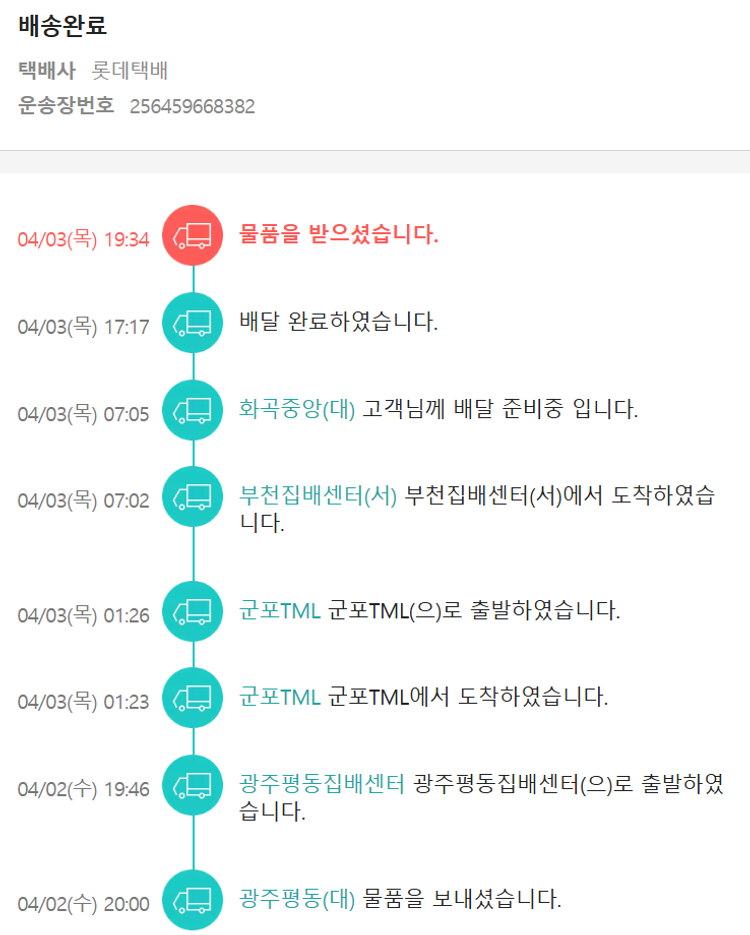 가격상승분 1,178원, 100원 미만 지원금 54원, 결제 수수료 10,694원, 기타 사업비는 행복나눔재단이 부담했습니다. (기부후기 발송시점에 최종 업데이트 됩니다.) 실제 쇼핑몰에서 확인되는 배송현황을 캡처한 내용입니다. 실시간 자료와는 차이가 있을 수 있습니다.