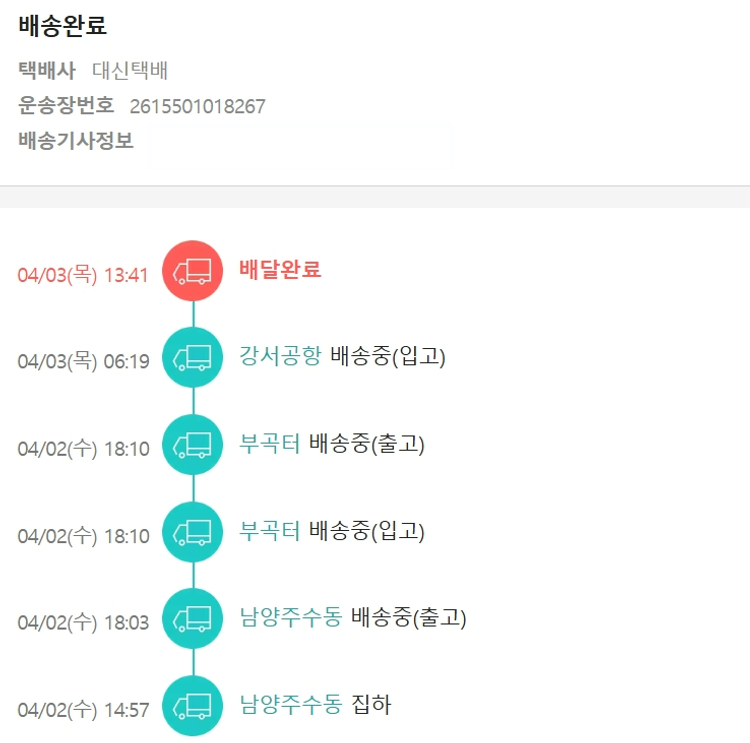 결제 수수료 10,398원, 기타 사업비는 행복나눔재단이 부담했습니다. (기부후기 발송시점에 최종 업데이트 됩니다.) 실제 쇼핑몰에서 확인되는 배송현황을 캡처한 내용입니다. 실시간 자료와는 차이가 있을 수 있습니다.