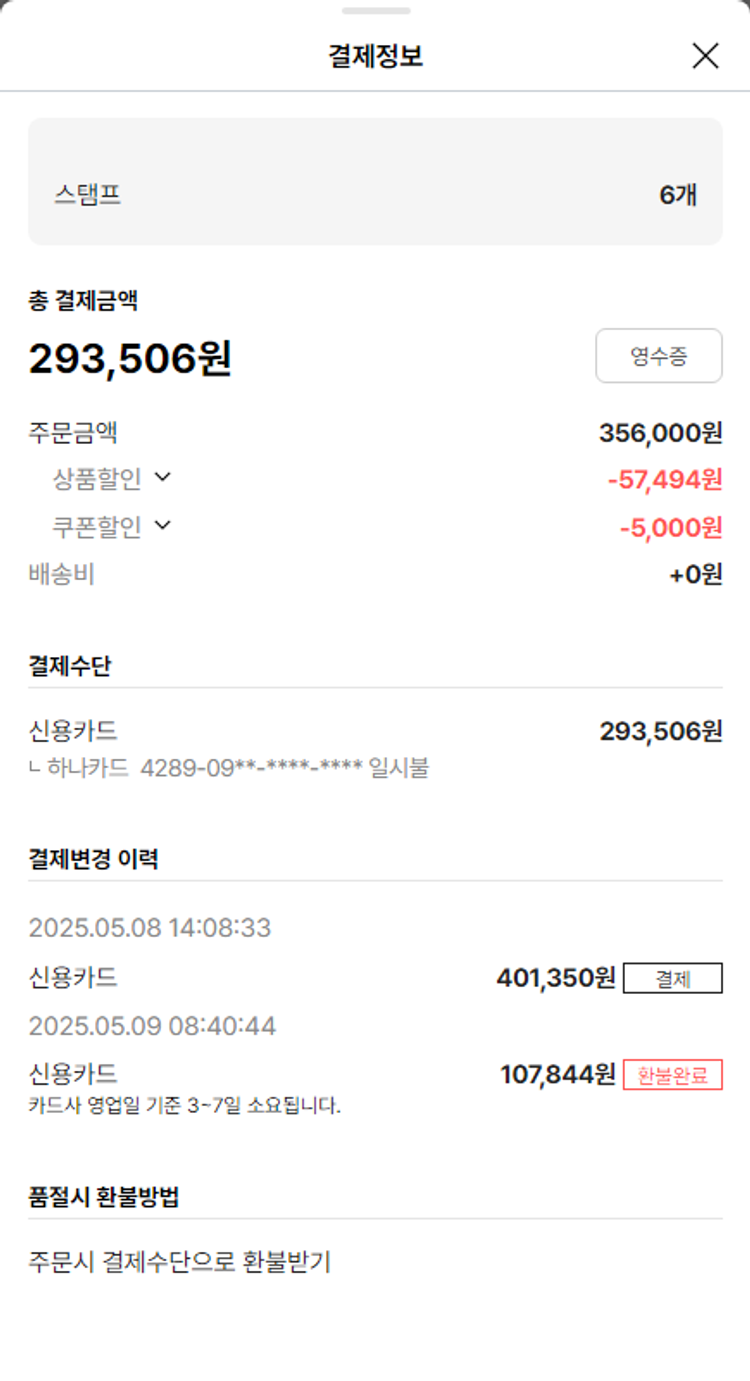 기부자님이 사용한 기부포인트 100원, 가격상승분 7,056원, 100원 미만 지원금 34원, 결제 수수료 10,985원, 기타 사업비는 행복나눔재단이 부담했습니다. (기부후기 발송시점에 최종 업데이트 됩니다.) 상품 주문 건 중 품절 발생하여 2025-05-09 재주문하였습니다. 실제 쇼핑몰에서 확인되는 배송현황을 캡처한 내용입니다. 실시간 자료와는 차이가 있을 수 있습니다.
