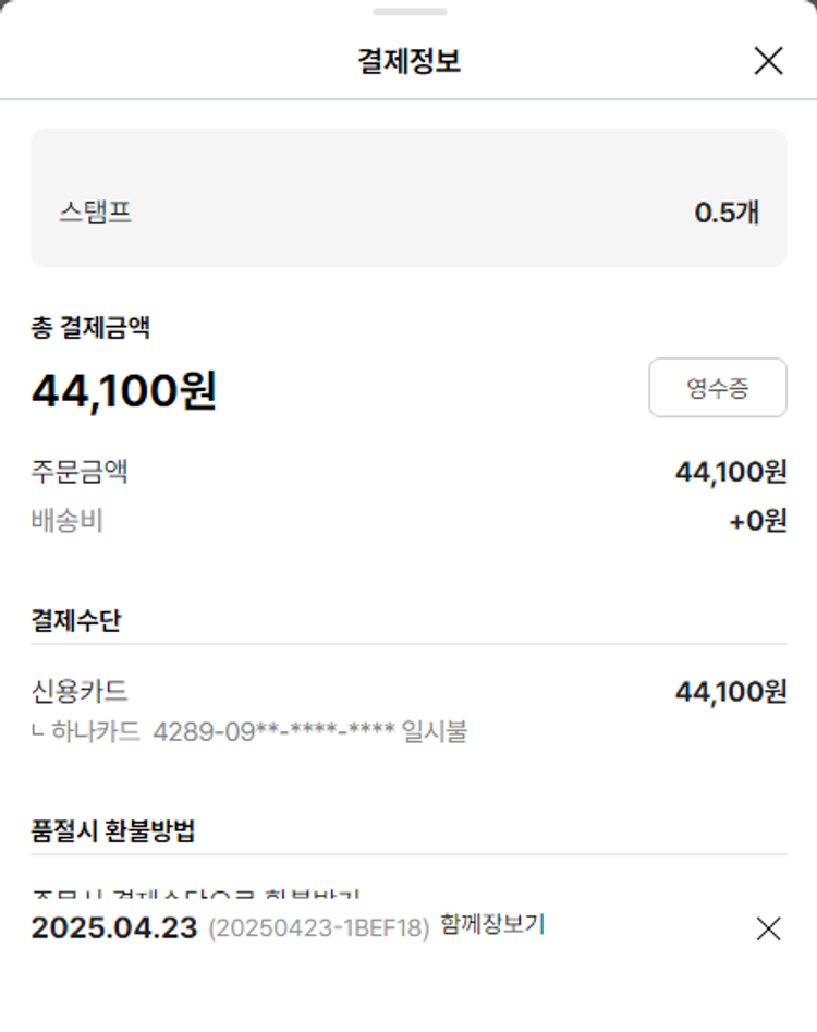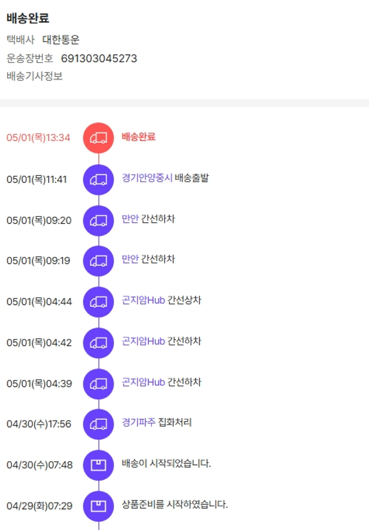 기부자님이 사용한 기부포인트 34,250원, 물품배송비 6,500원, 가격상승분 11,180원, 100원 미만 지원금 40원, 결제 수수료 16,915원, 기타 사업비는 행복나눔재단이 부담했습니다. (기부후기 발송시점에 최종 업데이트 됩니다.) 상품 주문 건 중 품절 발생하여 2025-04-28 재주문하였습니다. 실제 쇼핑몰에서 확인되는 배송현황을 캡처한 내용입니다. 실시간 자료와는 차이가 있을 수 있습니다.