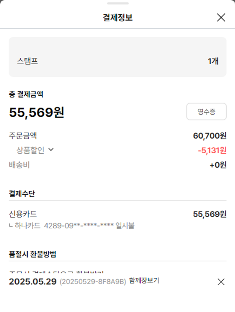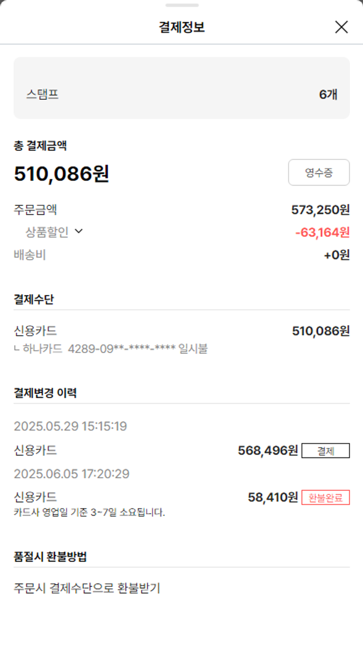 기부자님이 사용한 기부포인트 8,000원, 가격상승분 229원, 100원 미만 지원금 26원, 결제 수수료 12,307원, 기타 사업비는 행복나눔재단이 부담했습니다. (기부후기 발송시점에 최종 업데이트 됩니다.) 상품 주문 건 중 품절 발생하여 2025-06-05 재주문하였습니다. 실제 쇼핑몰에서 확인되는 배송현황을 캡처한 내용입니다. 실시간 자료와는 차이가 있을 수 있습니다.