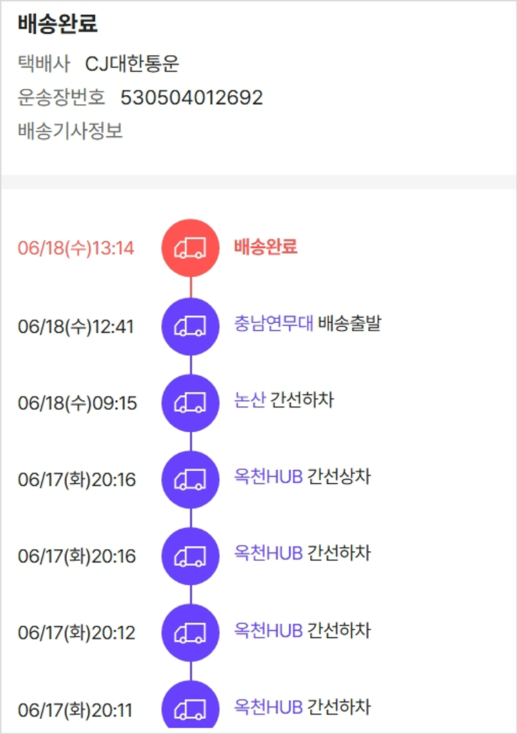 기부자님이 사용한 기부포인트 3,000원, 물품배송비 3,000원, 가격상승분 24,200원, 결제 수수료 21,002원, 기타 사업비는 행복나눔재단이 부담했습니다. (기부후기 발송시점에 최종 업데이트 됩니다.) 상품 주문 건 중 품절 발생하여 2025-06-16 재주문하였습니다. 실제 쇼핑몰에서 확인되는 배송현황을 캡처한 내용입니다. 실시간 자료와는 차이가 있을 수 있습니다.