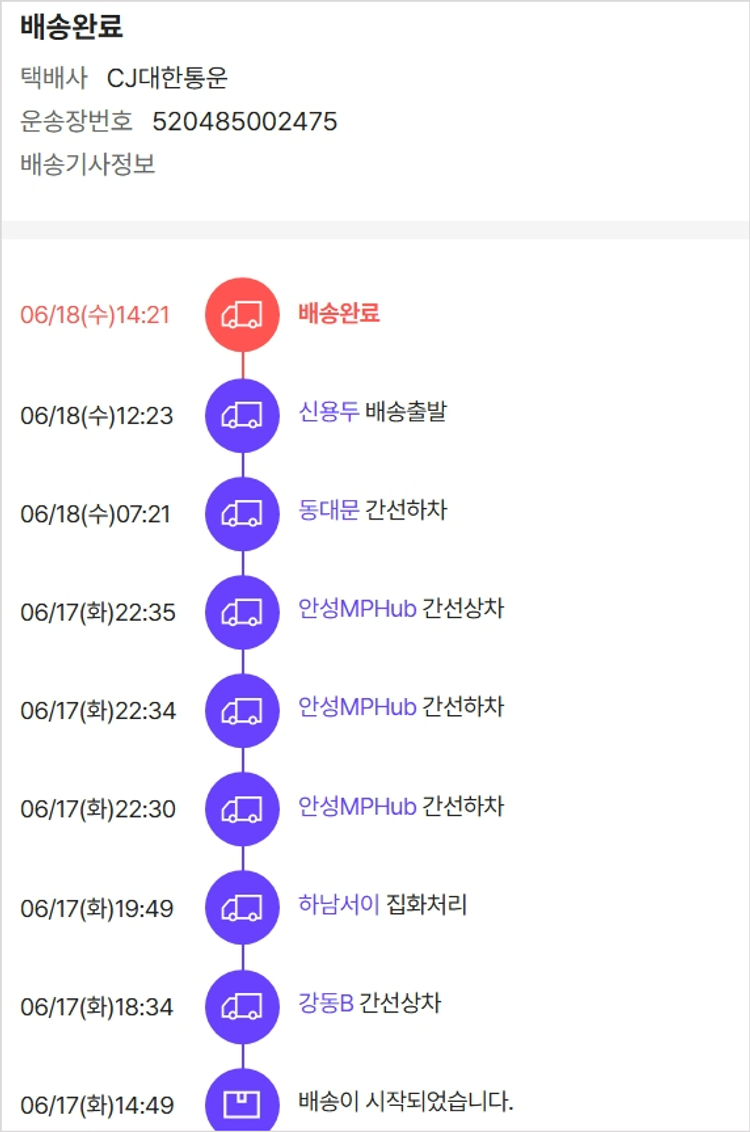 기부자님이 사용한 기부포인트 16,200원, 가격상승분 20,600원, 100원 미만 지원금 10원, 결제 수수료 11,149원, 기타 사업비는 행복나눔재단이 부담했습니다. (기부후기 발송시점에 최종 업데이트 됩니다.) 실제 쇼핑몰에서 확인되는 배송현황을 캡처한 내용입니다. 실시간 자료와는 차이가 있을 수 있습니다.