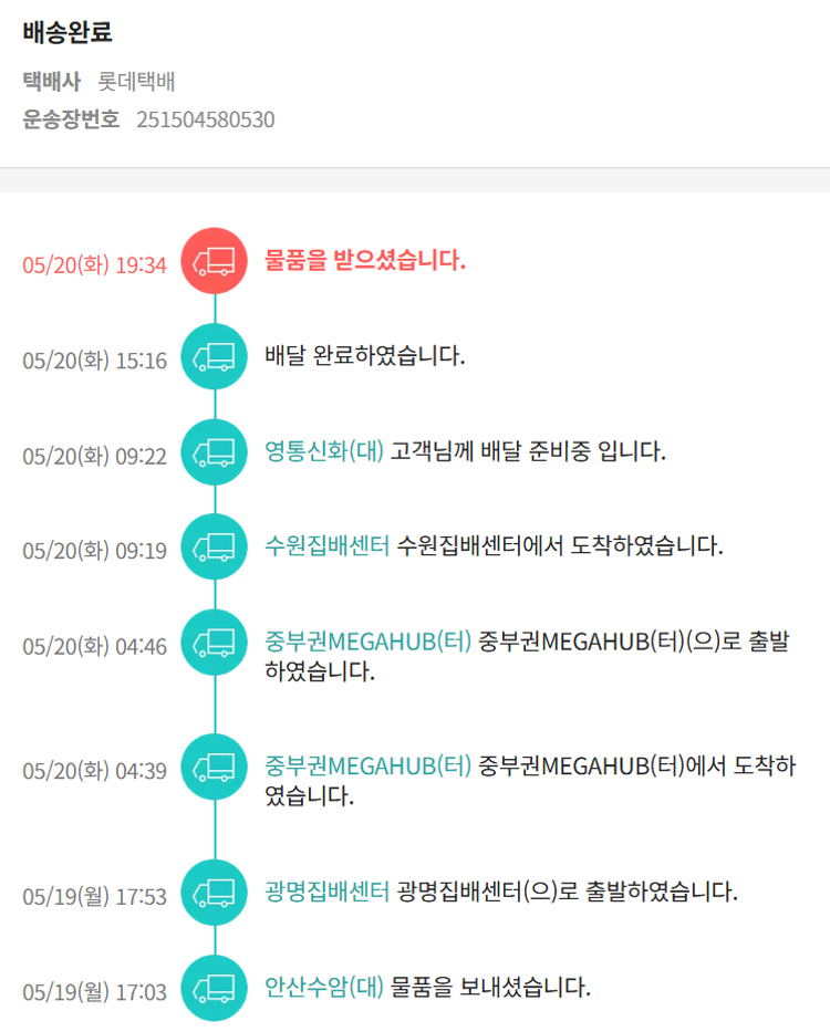 기부자님이 사용한 기부포인트 25,250원, 100원 미만 지원금 80원, 결제 수수료 18,257원, 기타 사업비는 행복나눔재단이 부담했습니다. (기부후기 발송시점에 최종 업데이트 됩니다.) 실제 쇼핑몰에서 확인되는 배송현황을 캡처한 내용입니다. 실시간 자료와는 차이가 있을 수 있습니다.