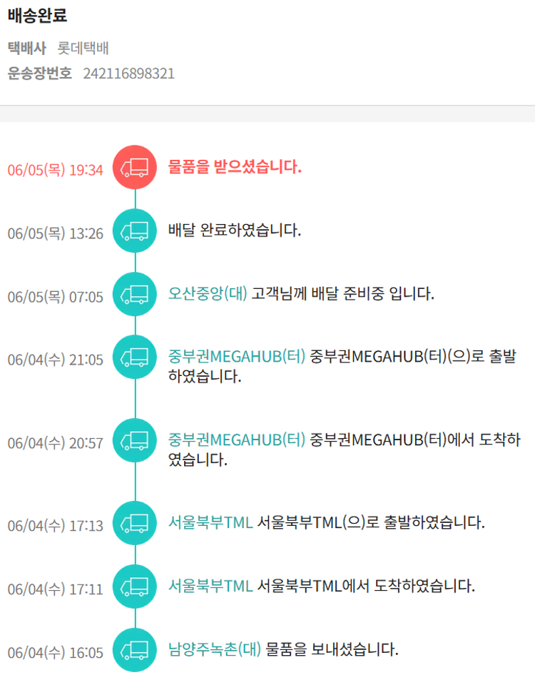 기부자님이 사용한 기부포인트 1,000원, 물품배송비 6,000원, 가격상승분 9,770원, 100원 미만 지원금 30원, 결제 수수료 10,725원, 기타 사업비는 행복나눔재단이 부담했습니다. (기부후기 발송시점에 최종 업데이트 됩니다.) 실제 쇼핑몰에서 확인되는 배송현황을 캡처한 내용입니다. 실시간 자료와는 차이가 있을 수 있습니다.