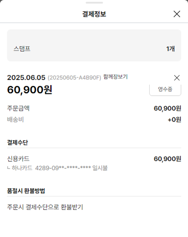 가격상승분 5,910원, 100원 미만 지원금 92원, 결제 수수료 11,452원, 기타 사업비는 행복나눔재단이 부담했습니다. (기부후기 발송시점에 최종 업데이트 됩니다.) 상품 주문 건 중 품절 발생하여 2025-06-13 재주문하였습니다. 실제 쇼핑몰에서 확인되는 배송현황을 캡처한 내용입니다. 실시간 자료와는 차이가 있을 수 있습니다.